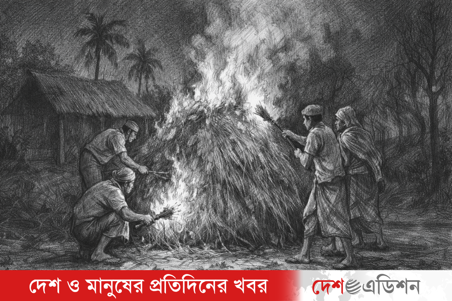 ঘটনাটি ঘটে মঙ্গলবার (২৪ ফেব্রুয়ারি ২০২৬) দিবাগত রাত আনুমানিক ৮টার দিকে। প্রত্যক্ষদর্শীরা জানান, তারাবির নামাজের পর অজ্ঞাতপরিচয় কয়েকজন ব্যক্তি পরিকল্পিতভাবে খড়ের পালায় আগুন লাগিয়ে দ্রুত স্থান ত্যাগ করেন।