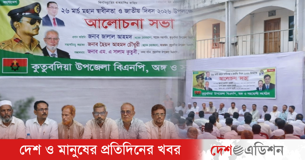 মহান স্বাধীনতা ও জাতীয় দিবস উপলক্ষে কক্সবাজারের কুতুবদিয়ায় উপজেলা বিএনপি ও এর অঙ্গ ও সহযোগী সংগঠনের উদ্যোগে একটি আলোচনা সভা অনুষ্ঠিত হয়েছে।