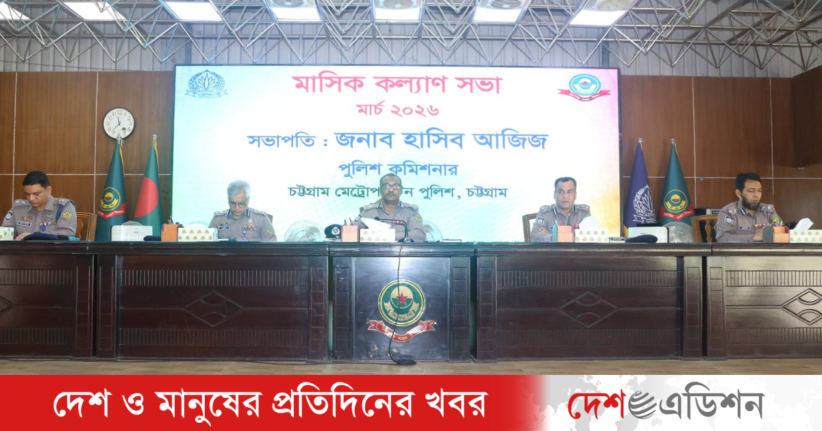 চট্টগ্রাম মেট্রোপলিটন পুলিশ (সিএমপি) এর মার্চ ২০২৬ মাসের মাসিক কল্যাণ সভা অনুষ্ঠিত হয়েছে। বৃহস্পতিবার (১২ মার্চ) সকাল ১১টা ৩০ মিনিটে দামপাড়া পুলিশ লাইন্সের মাল্টিপারপাস শেডে এ সভার আয়োজন করা হয়।