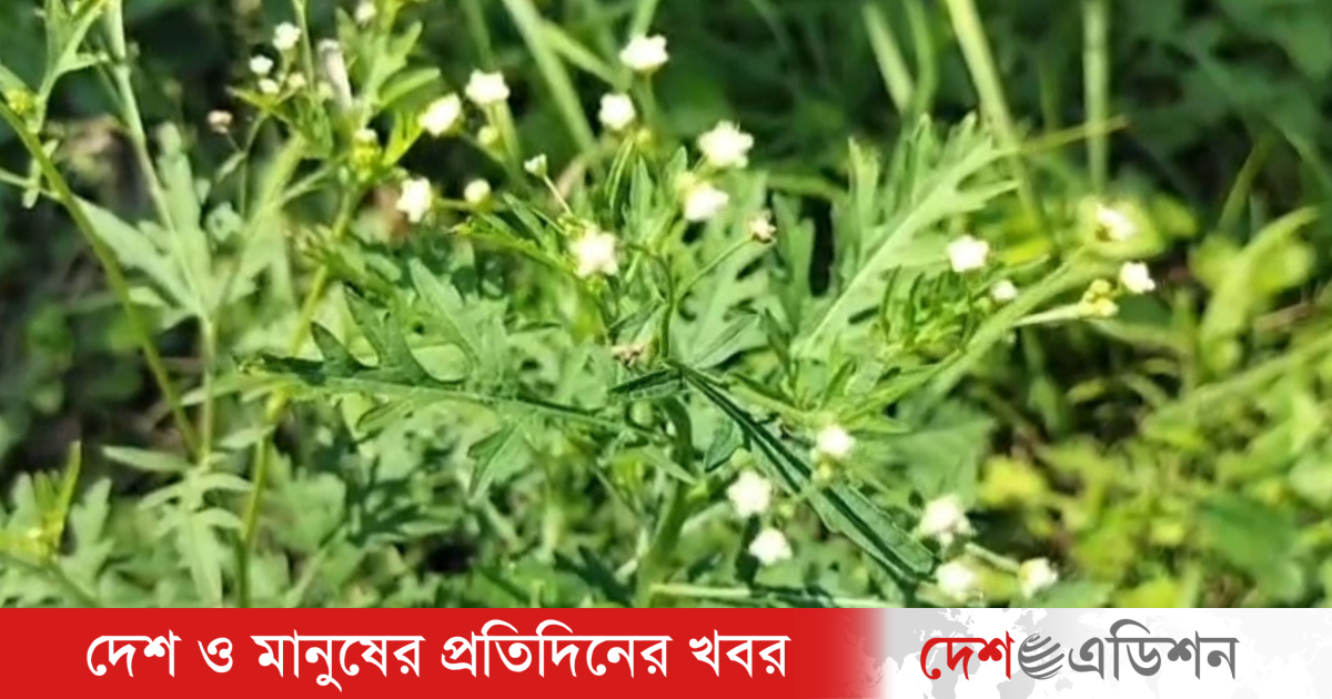 নাটোরের নলডাঙ্গা উপজেলাসহ দেশের বিভিন্ন এলাকায় দ্রুত ছড়িয়ে পড়ছে বিষাক্ত আগাছা পার্থেনিয়াম, যা নীরবে মানবদেহ, গবাদিপশু ও কৃষির জন্য মারাত্মক হুমকি হয়ে উঠছে। দেখতে ধনে গাছের মতো এই উদ্ভিদটির উচ্চতা সাধারণত দুই থেকে তিন ফুট এবং সবুজ পাতার ফাঁকে ছোট সাদা ফুল থাকে। আকর্ষণীয় চেহারার কারণে অনেকেই এটিকে সহজে শনাক্ত করতে না পারায় এর বিস্তার আরও বাড়ছে। বর্তমানে পতিত জমি, আবাদি জমি, রাস্তার ধারে ও রেললাইনের পাশেও ব্যাপকভাবে দেখা যাচ্ছে এই আগাছা।