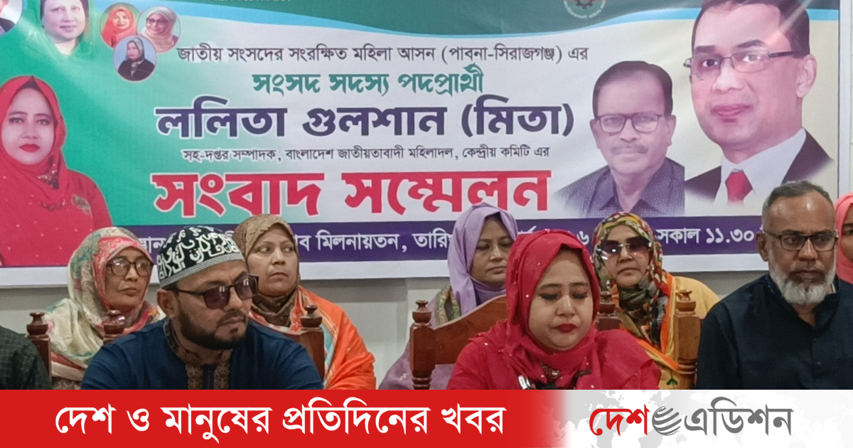 জাতীয় সংসদের সংরক্ষিত মহিলা আসনের পাবনা ও সিরাজগঞ্জ অঞ্চল থেকে প্রার্থীতা ঘোষণা করেছেন বাংলাদেশ জাতীয়তাবাদী মহিলা দল কেন্দ্রীয় কমিটির সহ-দপ্তর সম্পাদক ললিতা গুলশান মিতা।