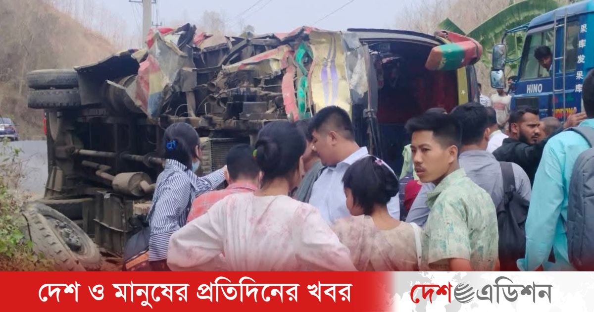 বৃহস্পতিবার (২৬ মার্চ) সকালে জেলার সাপছড়ি এলাকায় এ ঘটনা ঘটে। সংশ্লিষ্ট সূত্রে জানা যায়, নানিয়ারচর থেকে প্রায় ৫০ জন যাত্রী নিয়ে বাসটি চট্টগ্রামের উদ্দেশ্যে রওনা দিয়েছিল। পথে একটি ঢালু সড়কে বাসটি নিয়ন্ত্রণ হারিয়ে সড়কের পাশে উল্টে যায়।
